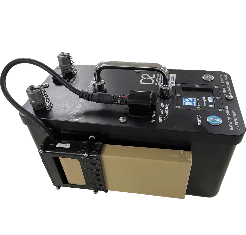 The particle counter has been built to use the standard military portable batter shown above or can be run from the battery pack found in the PEAK kit, or from wall power. Pictured below the Particle Counter can be ordered to come with the backpack version which is used for example on an aircraft carrier flight deck. The Particle counter has passed testing from -30°C to 50°C and proven it is submersible meaning it can handle operation in any conditions of weather.