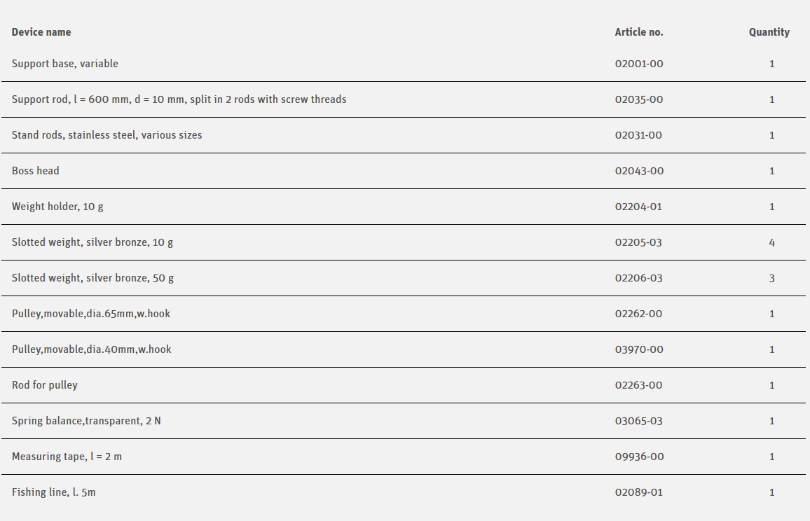 The term “(slotted) weight” is incorrect inasmuch as we are dealing with a mass which becomes a weight (in reality “a weight-force”) under the influence of the earth’s gravity. The term “mass piece” used here is better.