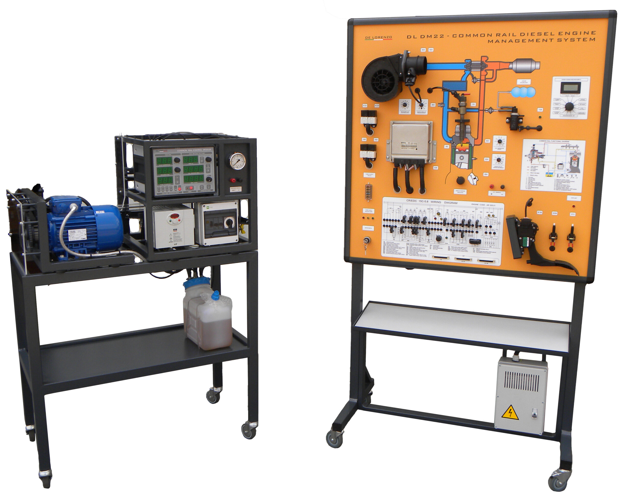 The trainer enables the study of the operating of the electronic, mechanic and hydraulic elements that constitute the control and fuel feed system of the contemporary CR/EDC ignition diesel engine.