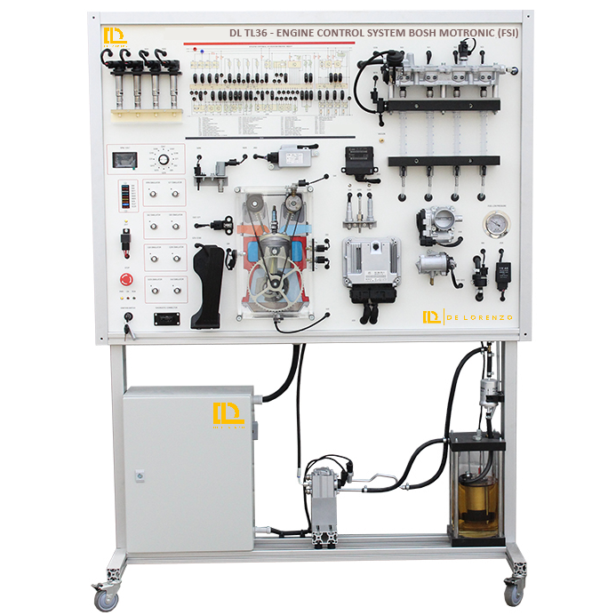 This training equipment DL TL36 is intended for demonstration, training and learning of the design, construction, principle of operation, settings and adjustments of a direct petrol (gasoline) injection control system Bosch Motronic MED 9.0 (FSI – Field Stratified Injection).