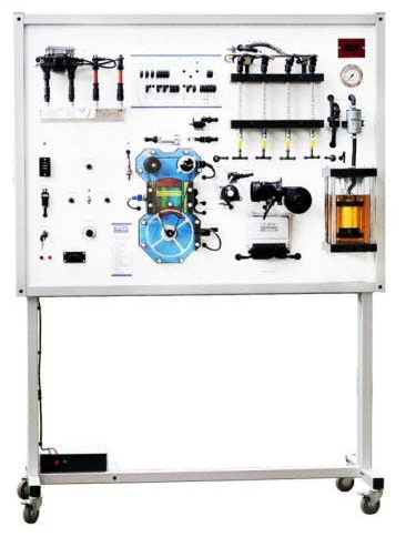 Integrated engine control system shows different operation modes of the fuel injection/ignition system and the trainer is based on OEM components of Audi/VW.