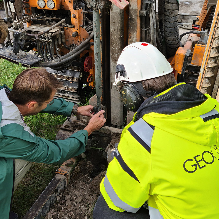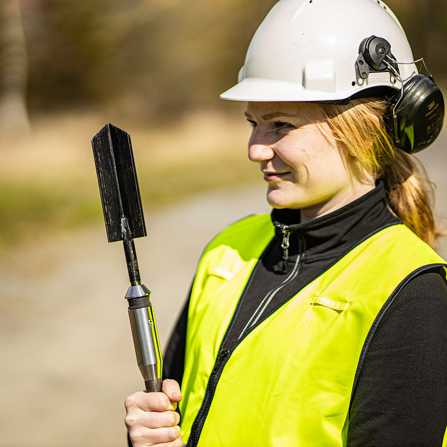 The vane test is done by pushing the down the hole equipment, similar to Nilcon mechanical vane apparatus, into the ground statically with a penetrometer or drilling rig. When the measuring level is reached the vane instrument is mounted on the rig and the rod string is put through the chuck on the instrument. Rotation is applied on the rod string and the torque is measured and viewed in real-time on your laptop. When the test is finished you either continue pushing down to the next level or retract your rods.