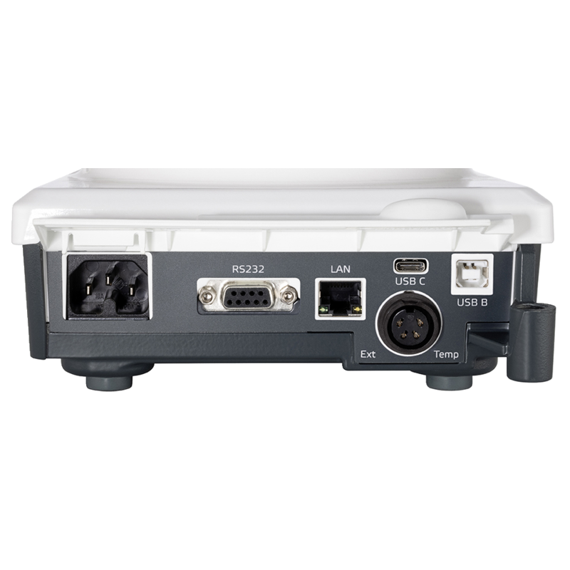 The Hei-PLATE Mix ‘n’ Heat Ultimate features various interfaces for automated laboratory processes. The RS232 and USB B ports allow control through our integrated Hei-PROCESS solution. The front USB A interface enables data logging via a USB stick, while the USB C interface allows you to connect the magnetic stirrer with the electric Heidolph lab jack for added convenience and safety.