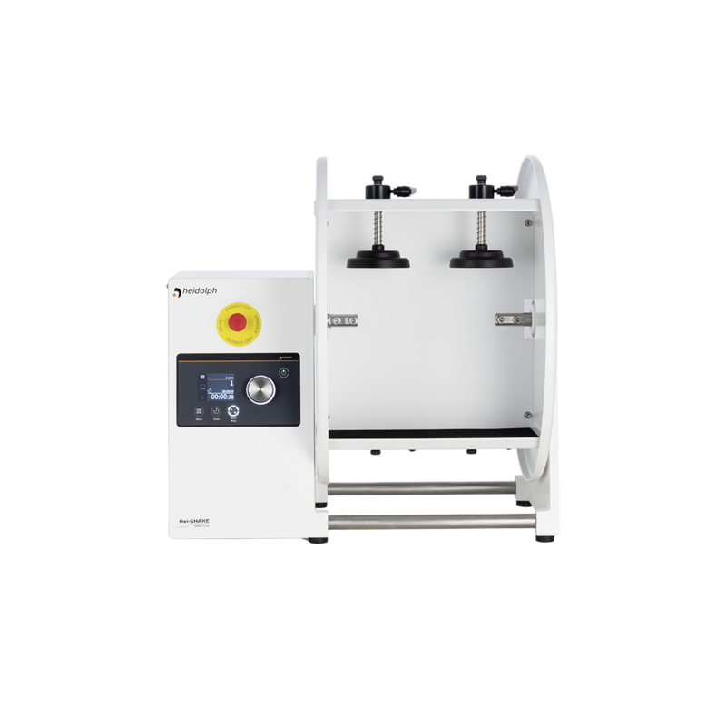 From a unique, very wide speed range (1 to 32 rpm) to the timer (1 min to 999 h 59 min) to an integrated RS 232 interface, the Hei-SHAKE Salto Core has all core functions required for optimum processing of samples that tend to sedimentation. The maximum permissible weight is 30 kg, so that samples with a high solid content can be properly mixed (DIN 19529). Since this device sets large forces in motion, it is equipped with an emergency stop switch for your safety.