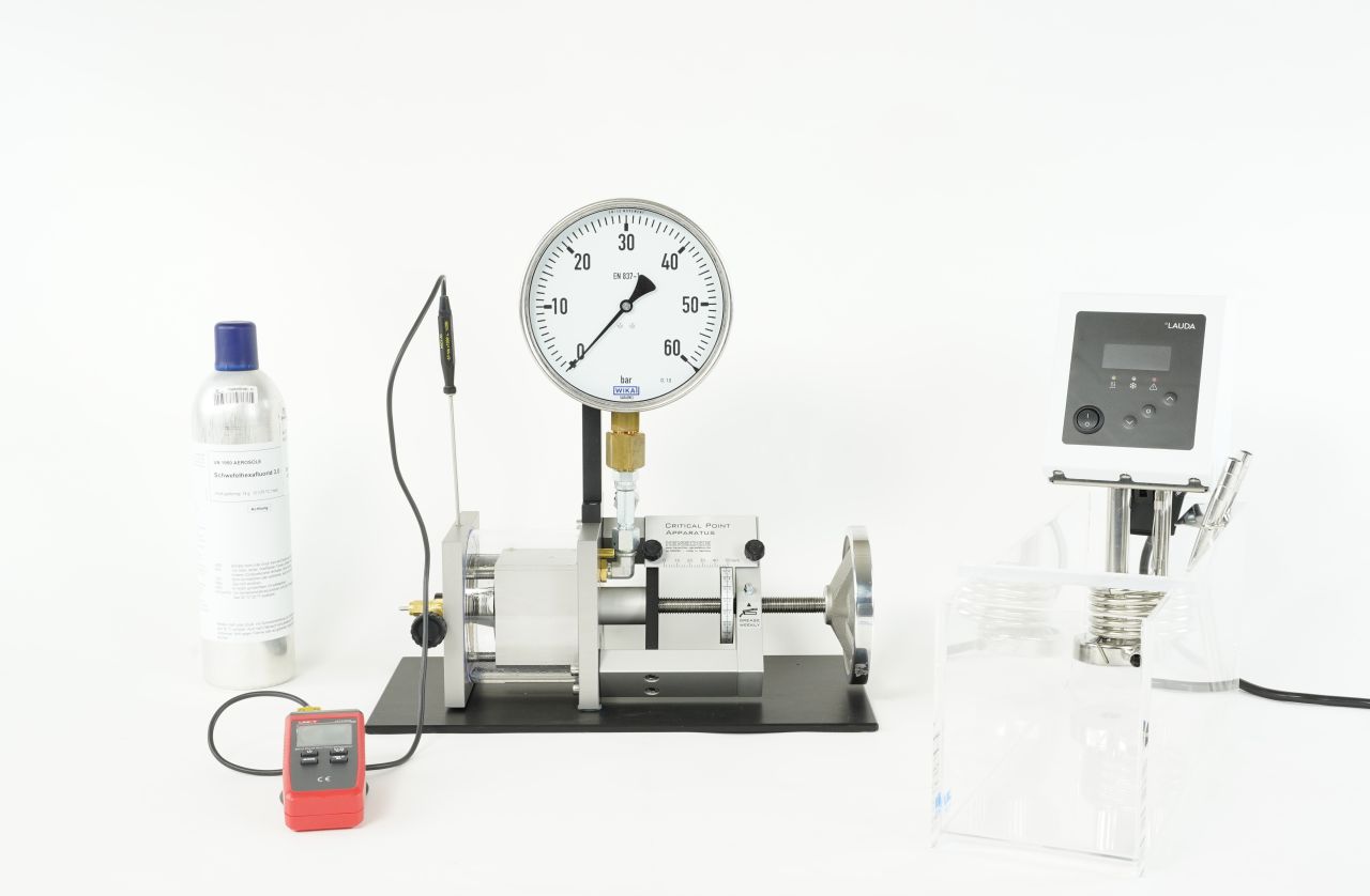 A substance which is gaseous under normal conditions is enclosed in a variable volume and the variation of pressure with the volume is recorded at different temperatures. The critical point is determined graphically from a plot of the isotherms.
